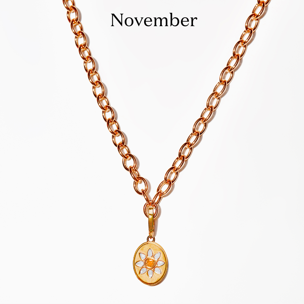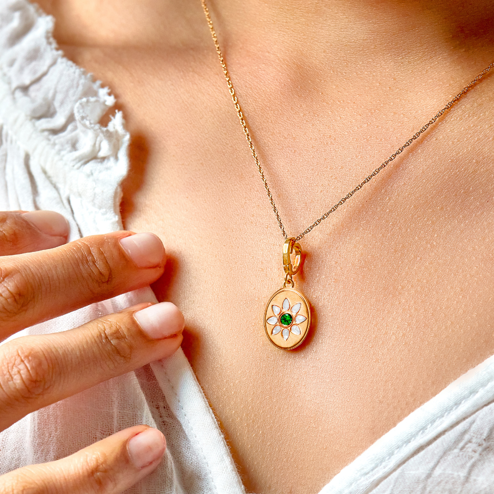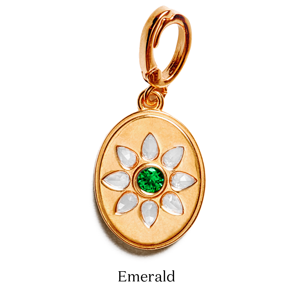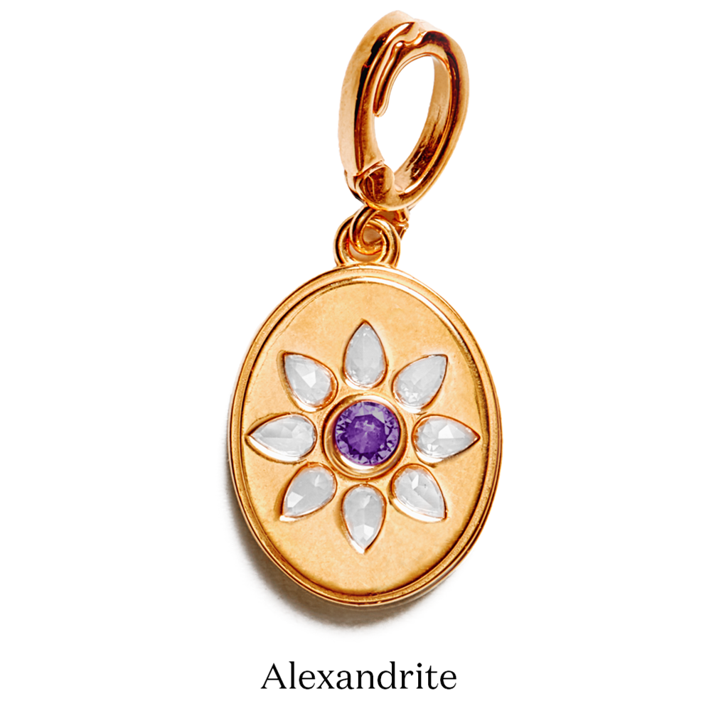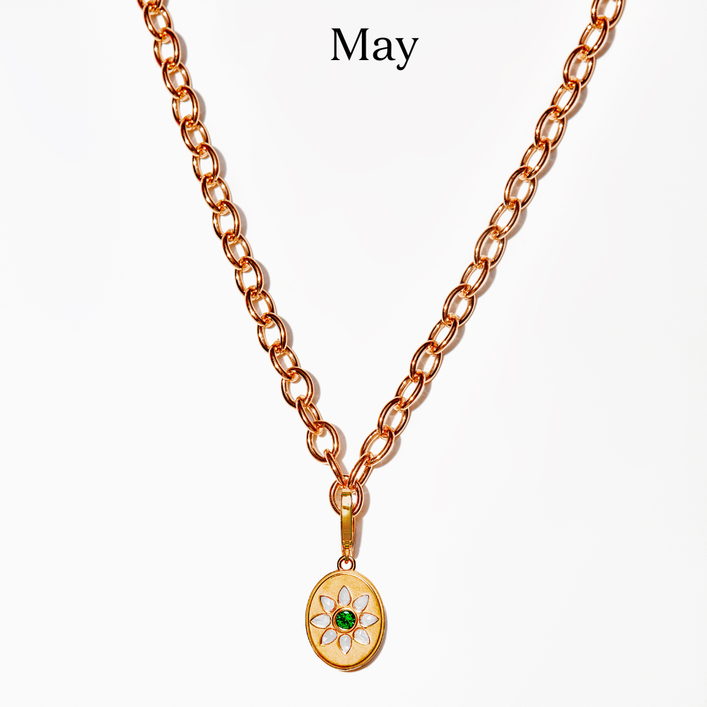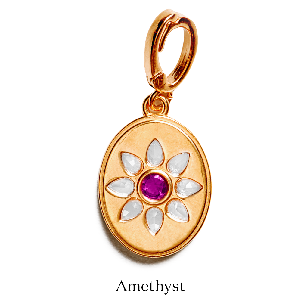 Celebrate someone you love with a Birthstone Charm—featuring a semi-precious birthstone framed by a radiant halo of white topaz gems. The secure hinge makes it easy to personalize with optional base chains.