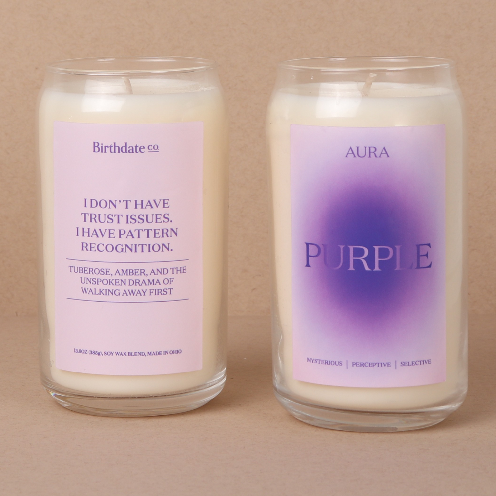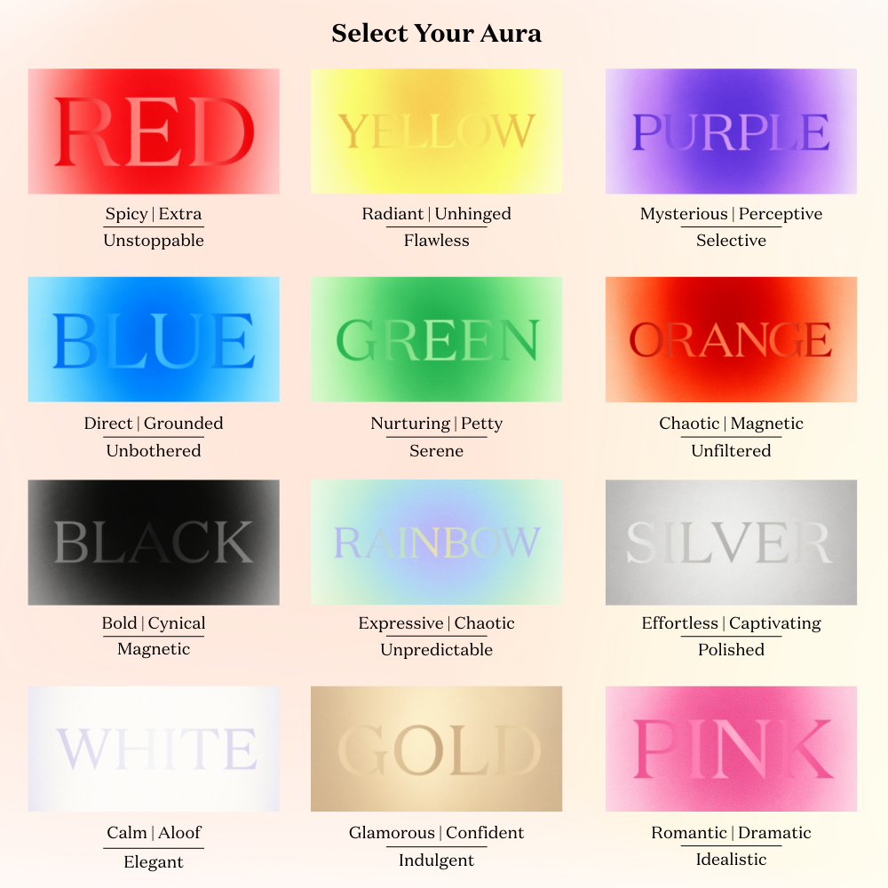 A lighthearted candle with a vibrant fragrance and radiant aesthetic that matches your aura. Celebrate, manifest or recharge your aura with a candle that's playful, bold and a little too accurate.